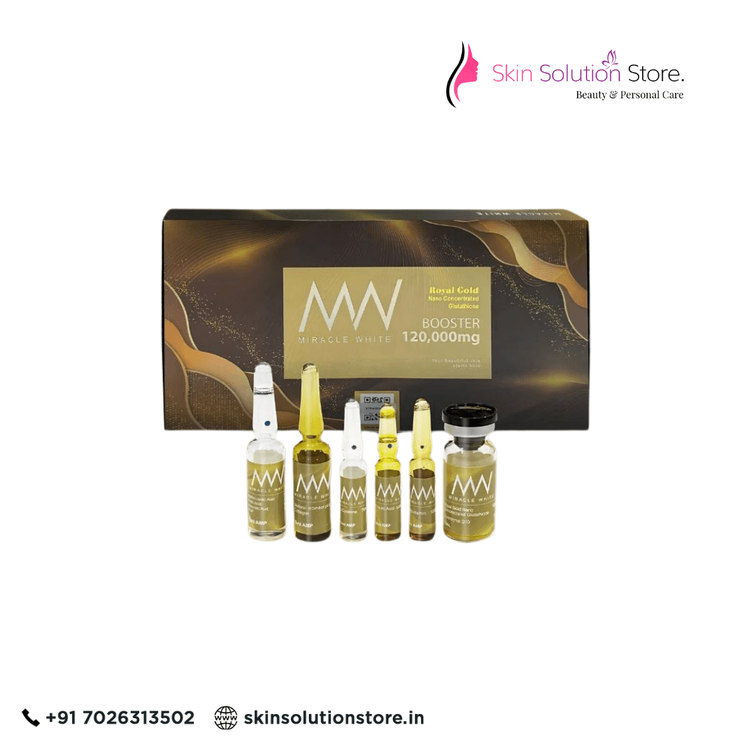 India’s climate exposes our skin to harsh sun, pollution, and environmental damage. Miracle White Royal Gold 120000mg Glutathione Injection is specially designed to address these concerns, offering benefits like: