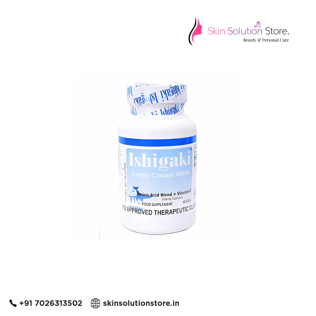 Ishigaki Amino Classic White L Glutathione from Skinsolutionstore is a natural herbal product that helps to improve the tone of your skin from dark brown/dusky brown to fairer. It contains Glutathione, which not only enhances skin tone but also aids in the exfoliation of dead skin from cells, resulting in fresh, healthy skin with a pleasant complexion.