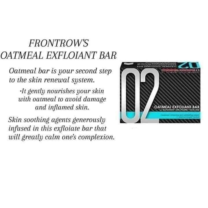 FRONTROW 02 OATMEAL EXFOLIANT BAR WITH GLUTATHIONE + OATMEAL + KOJIC ACID BENEFITS – To avoid damaged and inflamed skin, use oatmeal to gently nourish it. Glutathione, oatmeal, and kojic acid are all included in each bar.