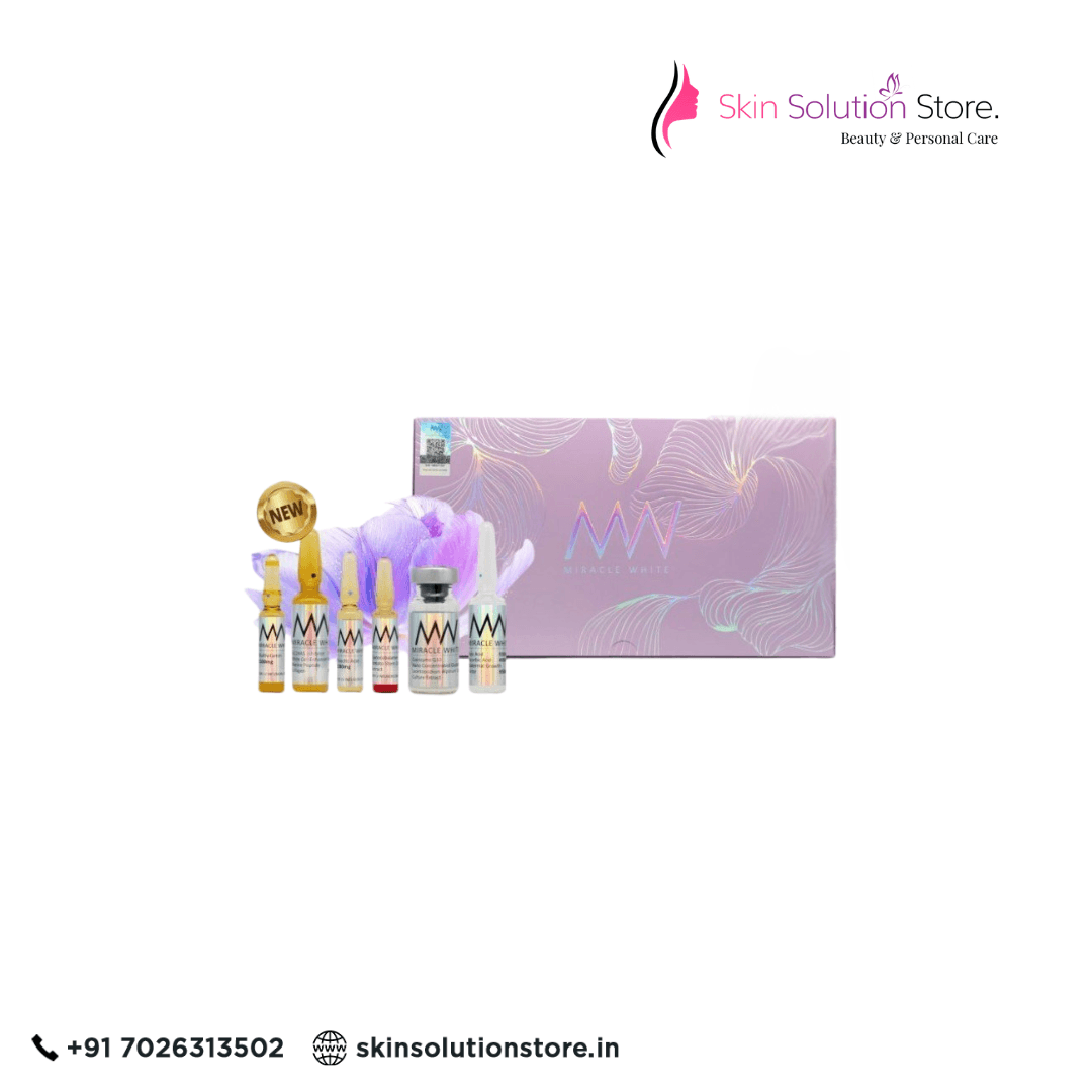 Miracle White 60000mg Glutathione Skin Whitening Injection With SLC24A5 is a skin Whitening therapy that aids in the attainment of a brighter and more even complexion. This treatment consists of 6 sessions, each session comprising the administration of a single dose of 60,000mg of glutathione, a strong antioxidant. Glutathione is known to aid in the reduction of melanin synthesis, the pigment that gives skin its colour. Glutathione can aid to remove dark spots and hyperpigmentation by lowering melanin production, resulting in a brighter and more even complexion.